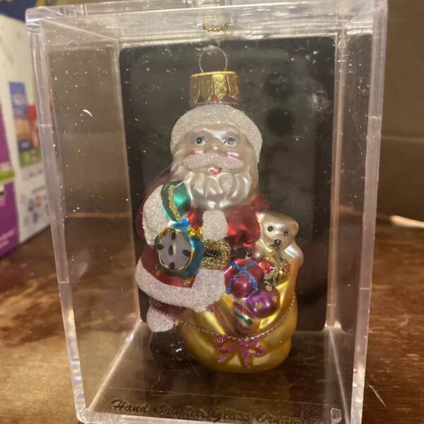 Christmas Ornament Santa Glass Hand Crafted Old Time Unique Treasure Holiday