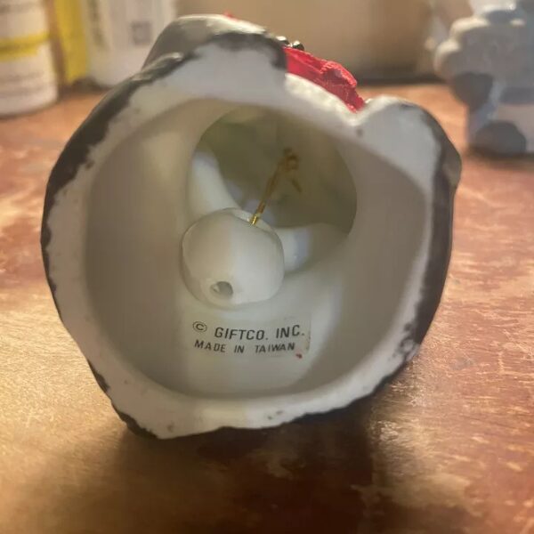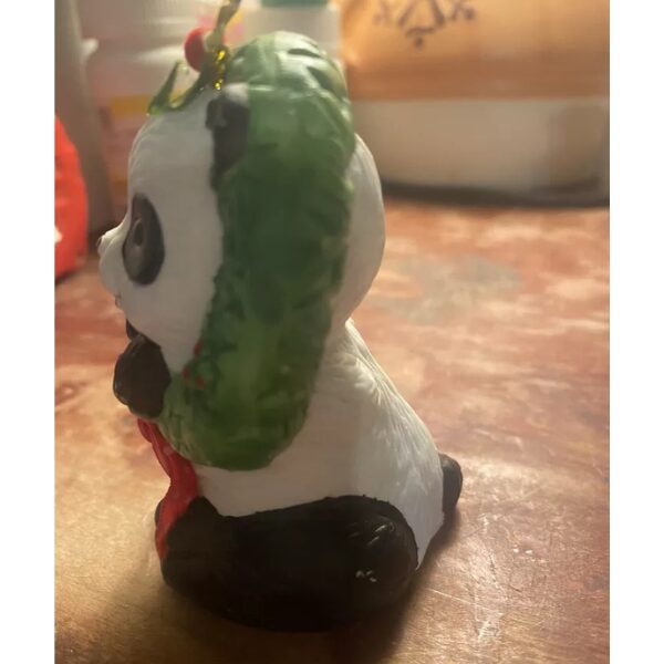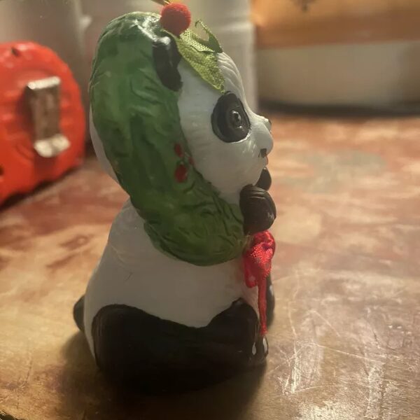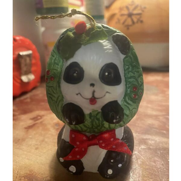 This cute panda bear is feeling festive with his wreath around his neck. But he’s not only an ornament he is also a bell. A nice holiday gift for anyone. He is used but in good condition.