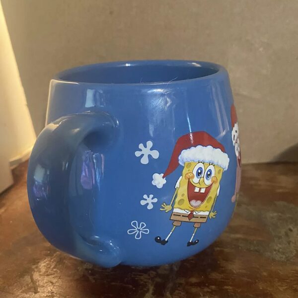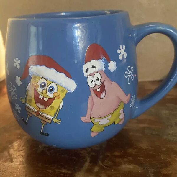 This is a new mug but without its box. A nice holiday gift for a kid, young or old, who loves Sponge Bob and Patrick. They are the characters from the tv cartoon. The mug is ceramic and in great shape. He can be yours today.